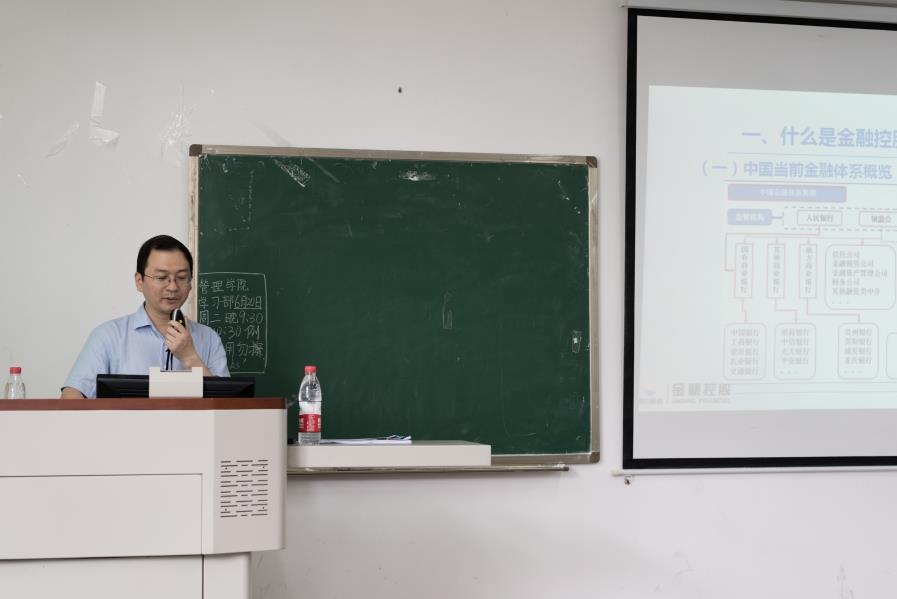在报告中,赵建军博士从金融控股公司及其产生原因、当前金融服务实体经济存在的主要问题、金融供给不足是制约县域经济发展的重要因素、金鼎控股创新投融资模式助力县域经济发展四个方面,理论结合实践,进行了深入浅出的讲述,并在报告后认真解答了师生的提问。