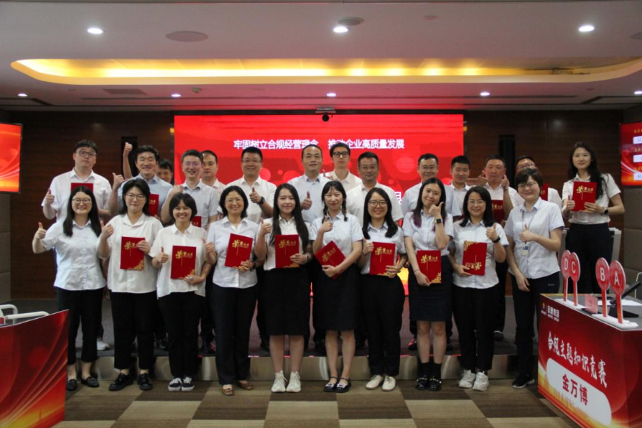 决赛题型多样、内容全面,现场氛围紧张、活泼,选手们发扬奋勇争先、团结协作的精神,沉着冷静、极限角逐,展现了一场精彩纷呈的比赛,赢得了在场观众阵阵掌声。最终,金石租赁荣获竞赛一等奖,金万博、能投保理并列获得二等奖,金鼎本部、金鼎基金及遂宁金坤并列获得三等奖。 此次合规知识竞赛,不仅是对广大员工合规知识技能的一次深入检阅,更是对企业合规文化建设工作的一次全面展示。金鼎集团将坚持依法治企,守牢依法合规经营底线红线,确保企业在法治轨道上深化改革、在法治轨道上高质量发展。